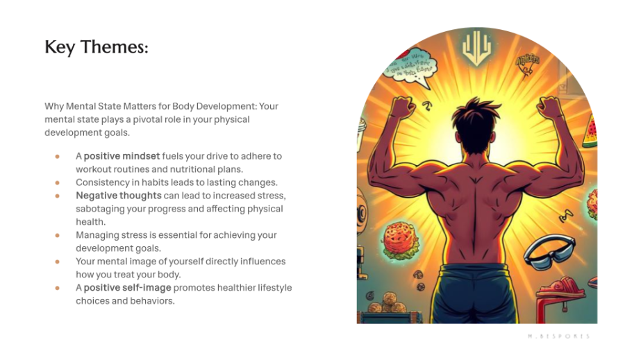 - Motivation & Consistency: A positive mindset fuels your drive to stick to your workout routine and nutritional plans.