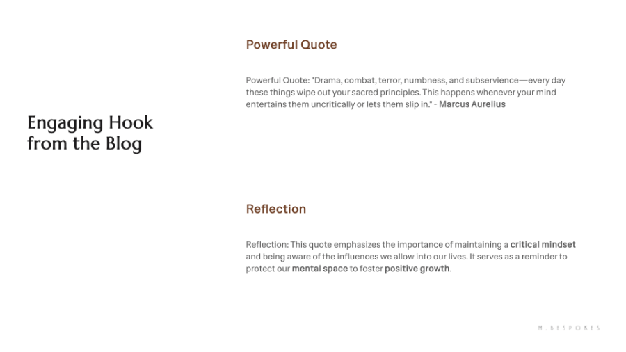 Marcus Aurelius, in his “Meditations,” warned against the insidious influence of unchecked negativity. “Drama, combat, terror, numbness, and subservience—every day these things wipe out your sacred principles. This happens whenever your mind entertains them uncritically or lets them slip in.“