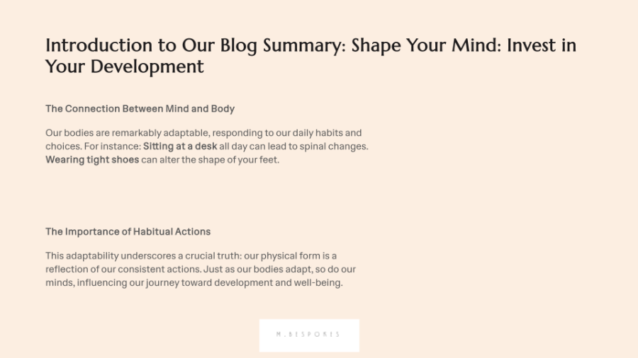 Remember, your body and mind are interconnected. By nurturing both, you’ll achieve your development goals and live a more fulfilling life.